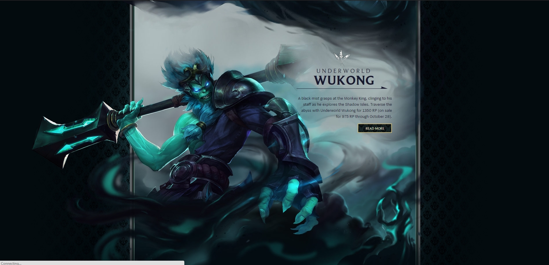 Scrolling down a little further, you see the Underworld Wukong skin. It’s introduced like the LeBlanc skin, but it sweetens the deal a little more. You’re given the price of 1350 RP (the game’s hard premium currency), but you’re also told that it’s on sale for just 975 through the 28th. Not only is it a new skin, it’s a new skin that’s worth more money than the skin before it, but you can get it for the same price as the previous one if you act now.